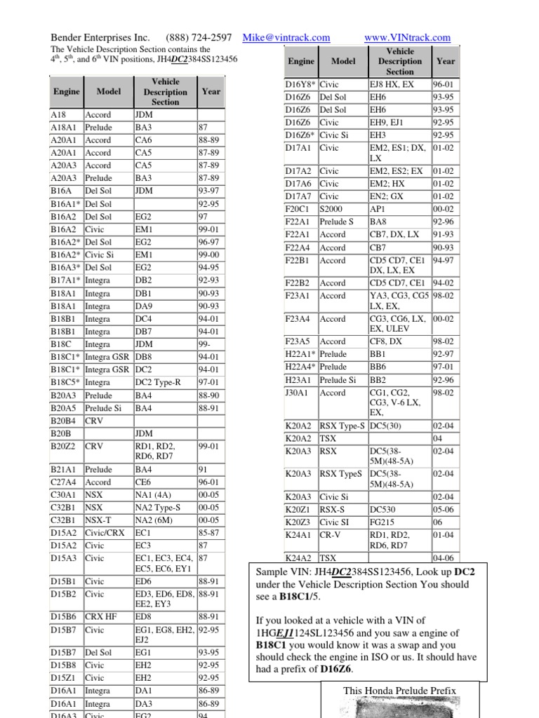 Honda Acura Engine Chart Pdf Automotive Industry Vehicles
